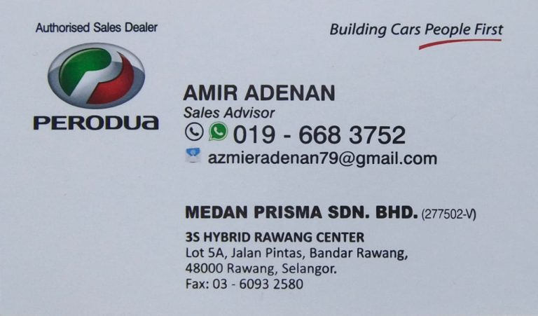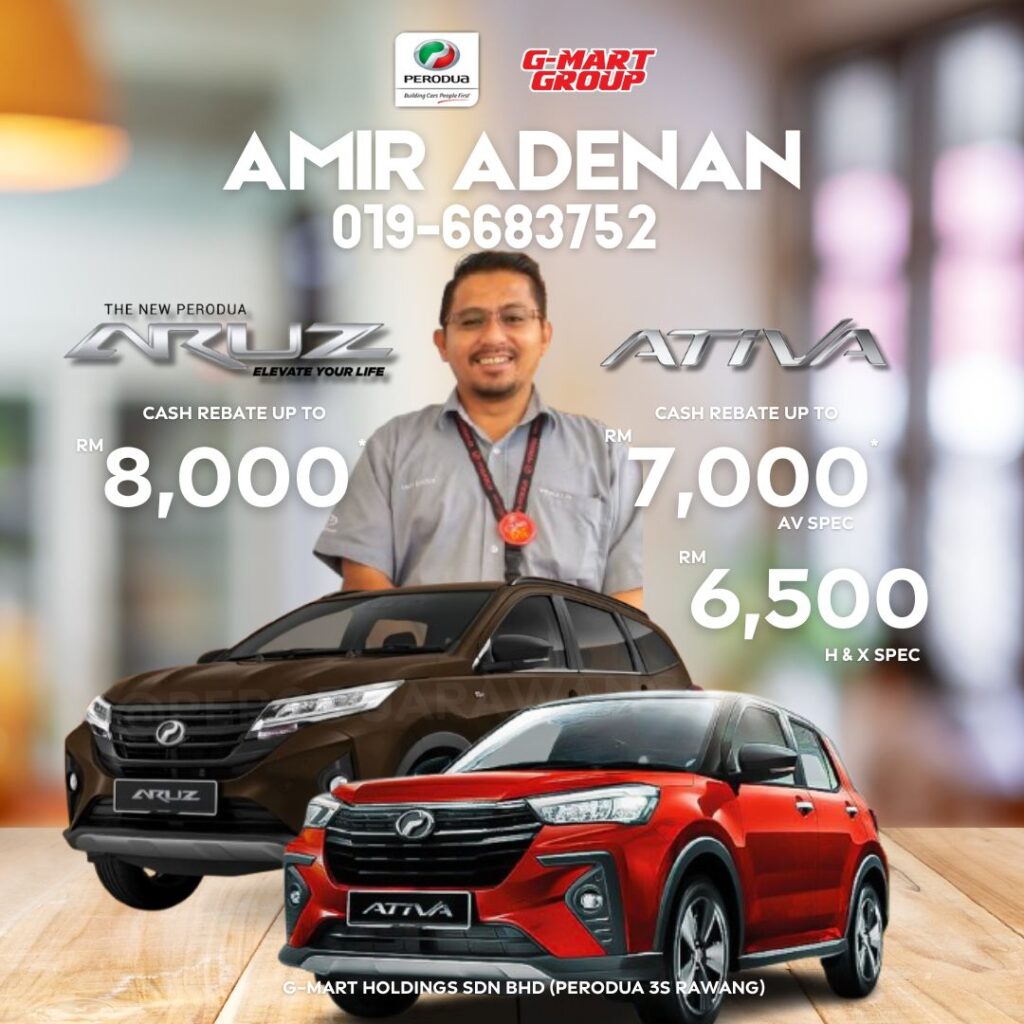 Hubungi Amir Adenan Perodua Rawang sekarang untuk sebarang pertanyaan berkaitan promosi terbaru Perodua. Saya akan bantu uruskan order anda dengan Pantas & Profesional.